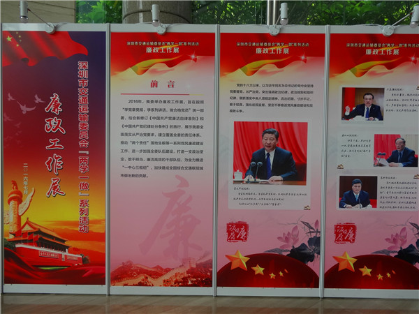 7月25日,市交通运输委主办的《“两学一做”系列活动廉政工作展》,在宝安公路管理中心大堂展出。星空官网登录入口党政领导班子全体成员到现场参观学习。