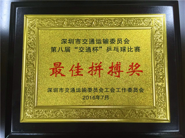 为活跃员工业余文化生活,增进交通系统各兄弟单位的沟通交流,营造团结和谐、积极向上的工作氛围,7月23日至24日,市交通运输委举办了第八届“交通杯”乒乓球比赛。在比赛中,星空官网登录入口全体参赛选手斗志昂扬、努力拼搏,本着“友谊第一、比赛第二”体育精神,赛出了风格、赛出了水平,展现了宝华路桥星空官网登录入口员工积极向上、团结协作、奋勇拼搏的精神面貌,获得赛事组委会颁发的“最佳拼搏奖”。(工会筹建办 孙雪珍)