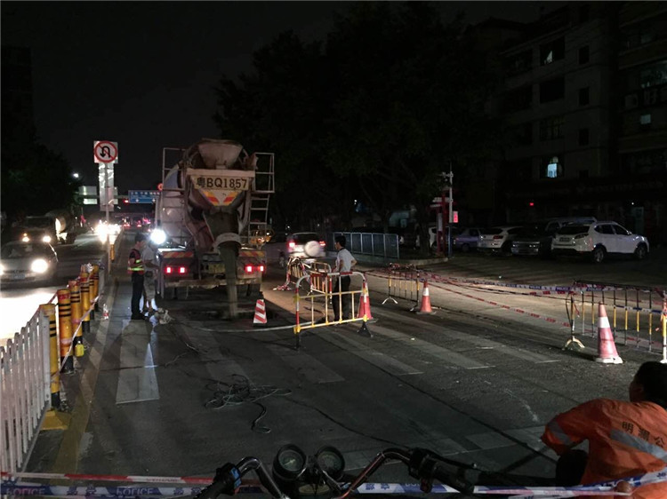 公司小修工程队接报后,立即启动道路抢险应急预案,迅速组织抢险小组赶赴事故现场实施道路抢险,于20分钟后抵达事故现场,马上做好安全围挡措施及时疏导交通。技术人员发现,病害路面掏空面积达30立方米左右,事故地处交通要道,过往车流量大,特别是大货车、大型运输车较多,对掏空路面反复倾轧,有进一步扩大路段掏空面积的隐患。考虑到白天进行施工会影响到过往车辆的正常通行,公司现场抢修人员决定先做好现场安全保障措施,拟定施工方案迅速隔离掏空路面。当天晚上车辆较少时,观澜工区出动12人次、施工车辆、抢险机械20台次,加班加点对掏空路面进行混凝土灌注施工。经过3个晚上的努力,9月26日凌晨病害路面全面修复,交通恢复顺畅。(明澜公司 文/黄子文)