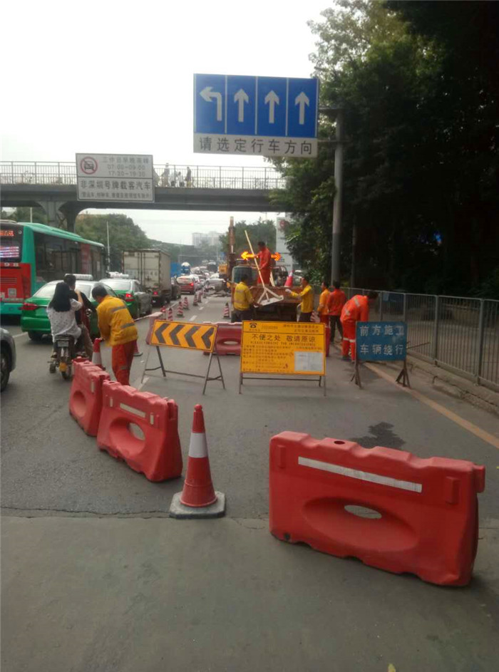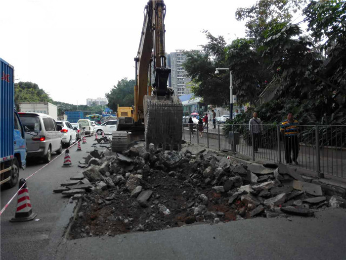 公司小修工程队接报后,立即启动道路抢险应急预案,迅速组织抢险小组赶赴事故现场实施道路抢修,于20分钟后抵达事故现场,并检查现场情况:路面破碎面积约260平方米左右,需补强260平方米,恢复标线约30平方米。因考虑到该路段车流量大,且路面破损面积较大,为确保过往车辆行人安全,现场抢修人员先做好现场安全保障措施迅速隔离破碎路面。然后凿除下沉破损沥青路面及水泥砼路面,现浇早强水泥砼垫层,喷洒乳化沥青粘层油,摊铺改性同步碎石应力吸收层。抢险人员经过2天连续奋战,于2016年11月27日上午完成对该路面破碎的修复工程。(明澜公司 文/黄子文)