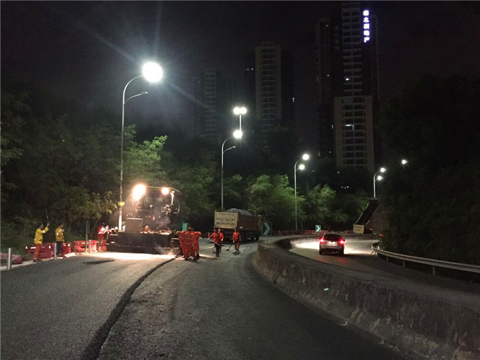 由于该项目位于梅观高速进入口,车流量大,白天现场施工难度较大,公司采取夜间作业的方式,安排小修工程队员在深夜加班加点,现场拆除波纹板护栏2200米,安装波纹板护栏2200米,铣刨路面约1万平方米,摊铺沥青路面约1万平方米,粉刷防撞墙约900平方米,于2016年11月20日完成全部任务。(明澜公司 文/黄子文)
