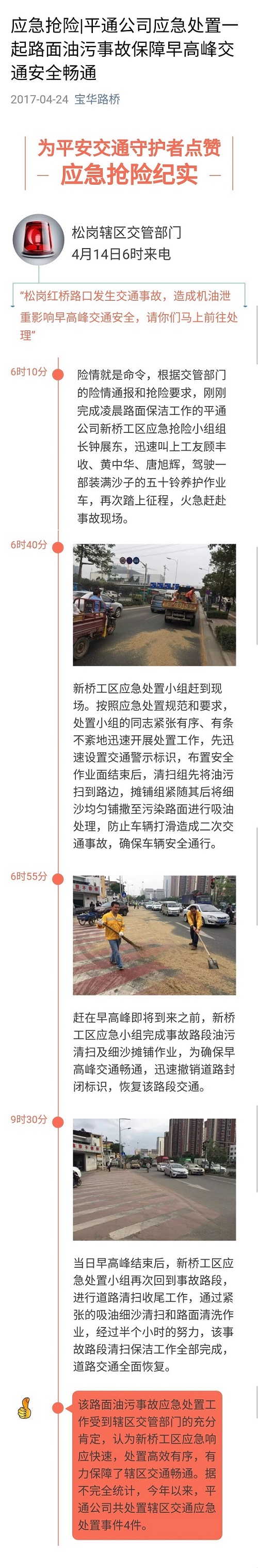 应急抢险|平通公司应急处置一起路面油污事故保障早高峰交通安全畅通