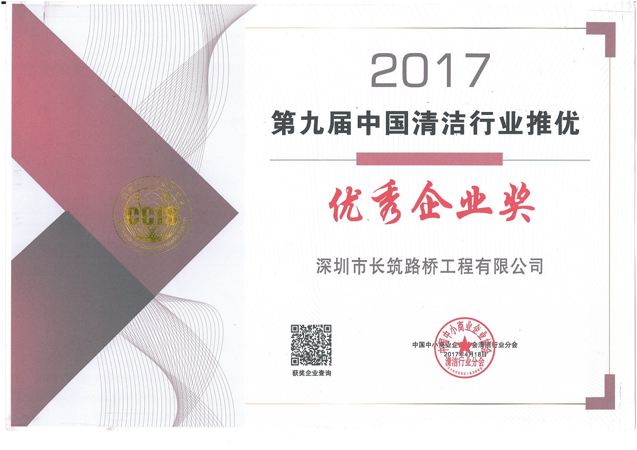 2017 年4 月,在第九届中国清洁环卫行业年会上,由中国中小商业企业清洁行业组织,经中国清洁网、《清洁》杂志等媒体多家单位评选,长筑公司荣获2017第九届中国清洁行业推优 “优秀企业奖”。(文/图:赖中)