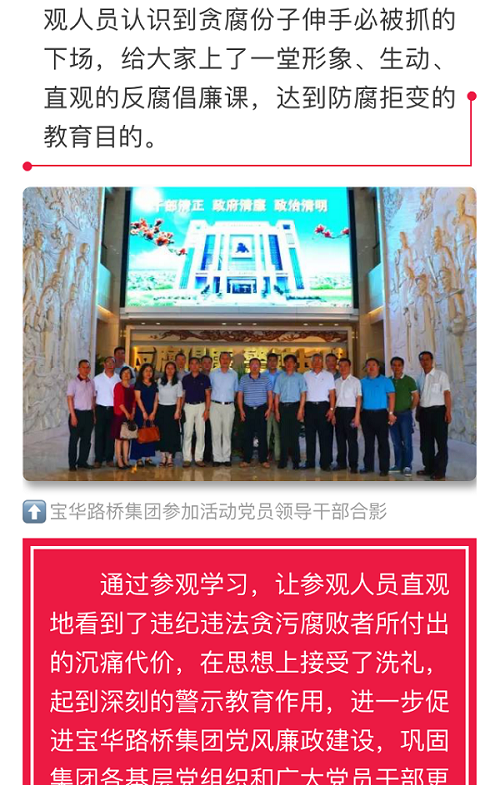 宝华路桥星空官网登录入口组织党员领导干部参观反腐倡廉教育基地