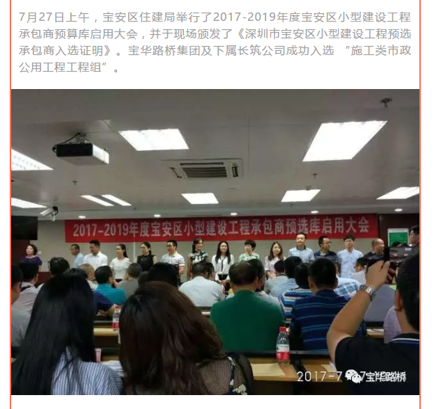 星空官网登录入口成功入选宝安区住建局小型建设工程预选承办商