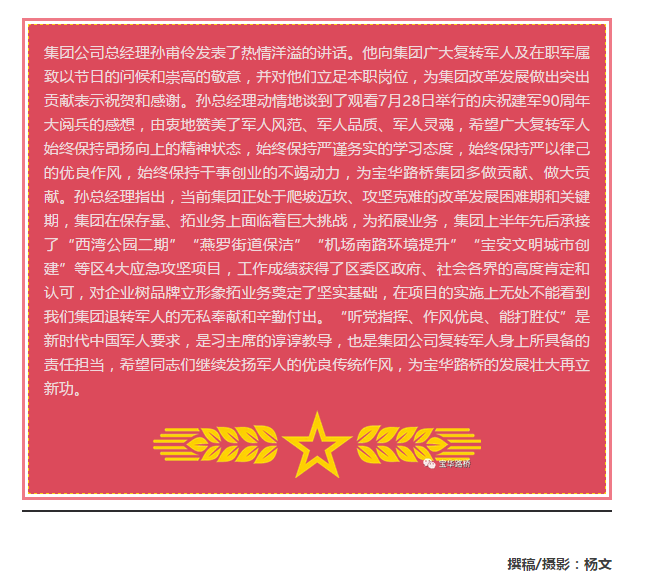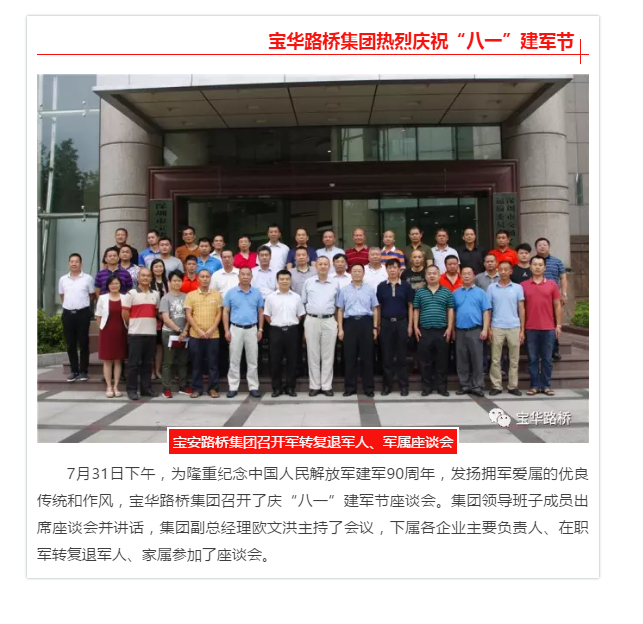 宝华路桥星空官网登录入口举办庆“八一”建军节座谈会