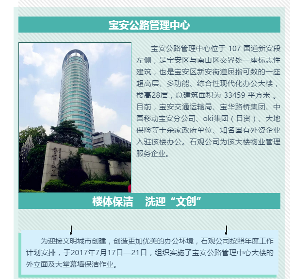 石观公司组织开展宝安区公路管理中心大楼外墙清洗工作