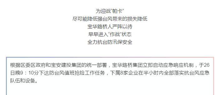 “帕卡”来势凶猛,宝华路桥再次集结抗台风