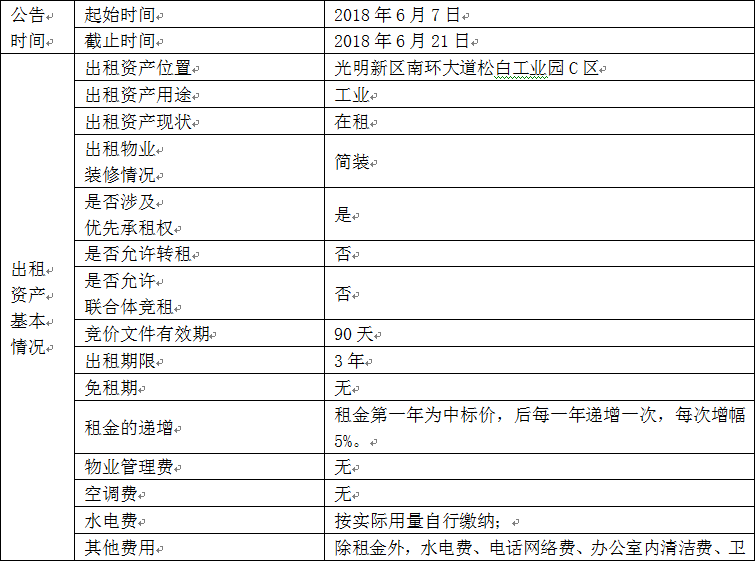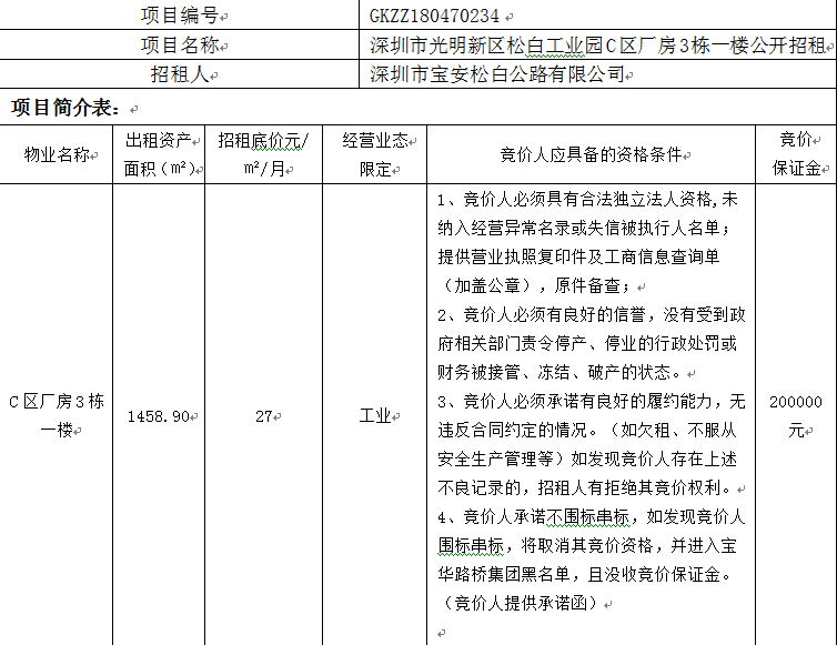 深圳市光明新区松白工业园C区厂房3栋一楼公开招租