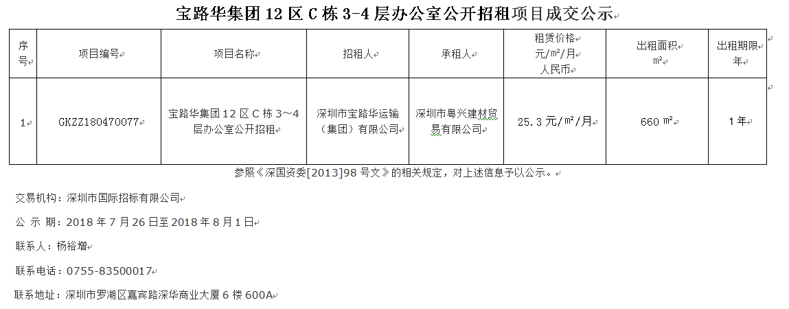 宝路华星空官网登录入口12区C栋3-4层办公室公开招租项目成交公示