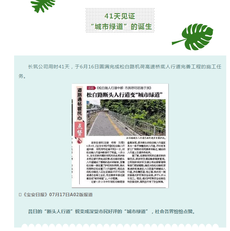 41天见证昔日“断头人行道”到“城市绿道”的蜕变