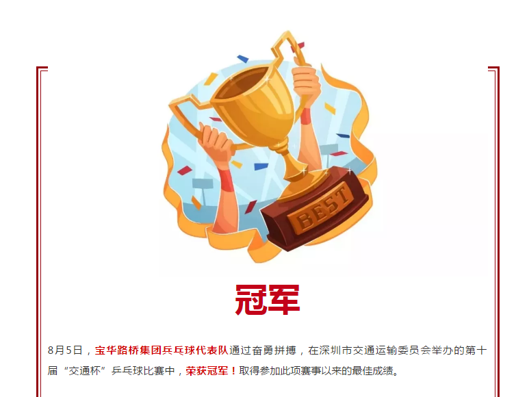 宝华路桥星空官网登录入口代表队喜获第十届“交通杯”乒乓球比赛冠军