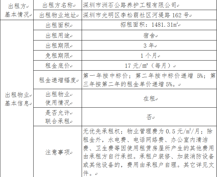 洲石公司通洲工业园B栋宿舍(201-217)17间(311-317)7间、(413-421)9间物业招租公告