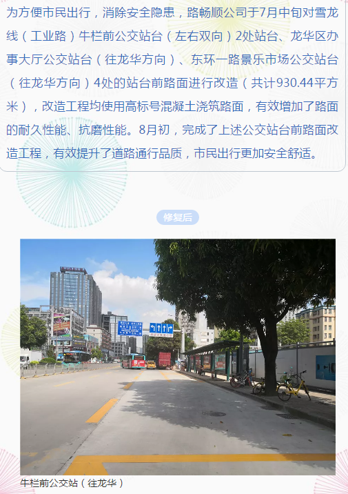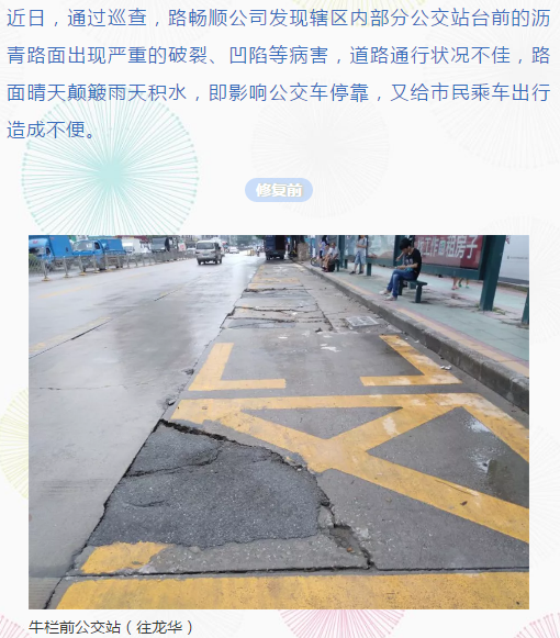 路畅顺公司完成牛栏前等公交站台路面改造工程