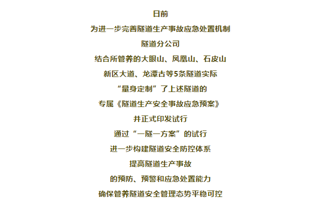 一隧一预案,5条隧道有了自己“专属定制”生产安全事故应急预案