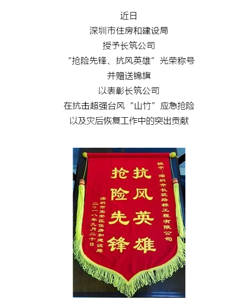 市住建局授予长筑公司“抢险先锋,抗风英雄”光荣称号
