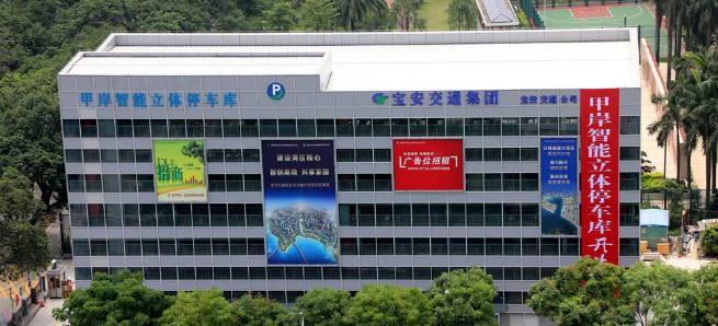 甲岸智能立体停车库是星空官网登录入口下属深圳市宝投交通发展有限公司投资建设,项目总用地面积为1911.21㎡,原有车位数75个,建成后车位数212个。该立体停车库共8层,占地面积为892.46平方米,总高度为21.35米,车库内197个车位,地面停车场15个车位,新增停车位137个。车库停放车辆限高1.95米、限宽1.95米、限长5.3米,适用于普通轿车及SUV等家用、商用车辆。车库主体结构采用全钢结构设计,幕墙采用玻璃幕墙+铝板组合设计,是集新型、美观与实用于一身的设计。